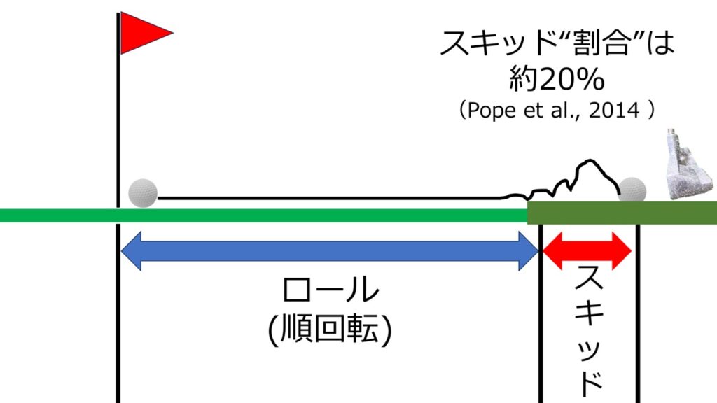 スキッドの割合は、打ったパット距離の約20%であることが先行研究より示されています(引用2)。