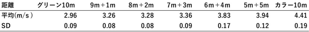 表1.各条件でのクラブヘッドスピードの平均と標準偏差(SD)