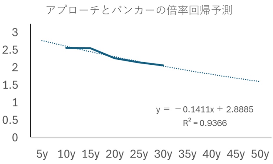 実験結果から距離の長いバンカーショットの倍率予測